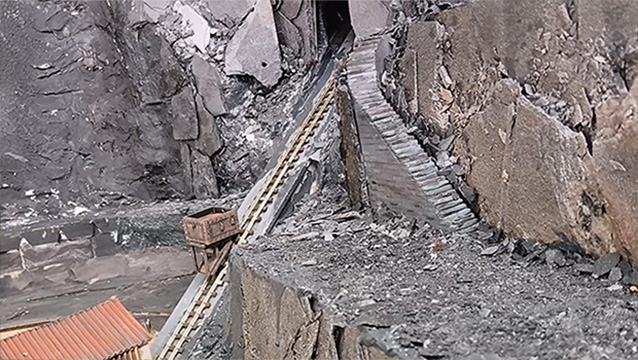 19 07 25 - Slate incline with truck going up empty. Also showing steps between levels.